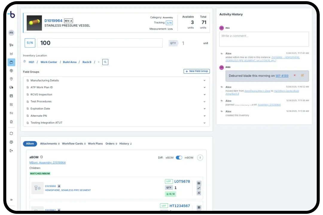 For a technician or operator on the floor, Boltline is the authoritative build guide. Procedures, torque values, sign-offs, configuration steps, and the exact revision of the hardware you are working on. And it updates in real time as things change.